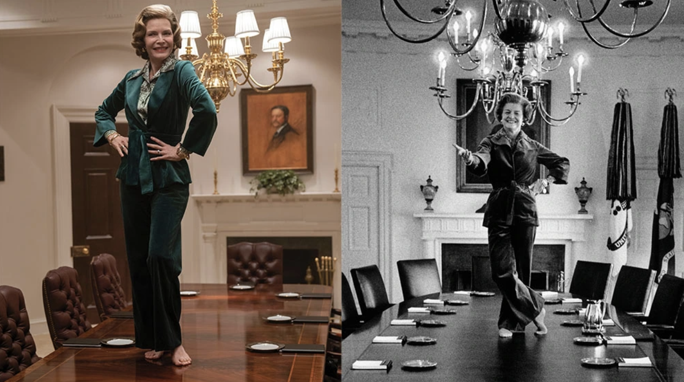 Let me set the stage real quick. Former dancer Betty Ford was the wife of 38th American President Gerald Ford, a 25 year Republican Congressman who accidentally became Vice President, and after President Nixon’s resignation over the Watergate scandal, became President (1974-1977). Mrs. Ford was a fierce advocate and left behind a legacy of the “Betty Ford Effect” for removing the stigma around breast cancer, substance addictions, face lifts/cosmetic procedures, and AIDS. She was a committed feminist, fighting for the Equal Rights Amendment, showing gratitude for the family’s hired help Clara, getting a female Secret Service agent staffed, pushing Mr. Ford to include more women on his team, and maintaining a pro-choice stance on abortion. In the ‘90s she was awarded the Presidential Medal of Freedom for her lifelong dedication and endless efforts to improving people’s lives.